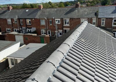Dry verge systems are used to cover and protect the edges of roof tiles, providing a neat finish. Maintaining dry verge systems prevents water ingress, protects roof edges from weather damage, and enhances the roof’s appearance.